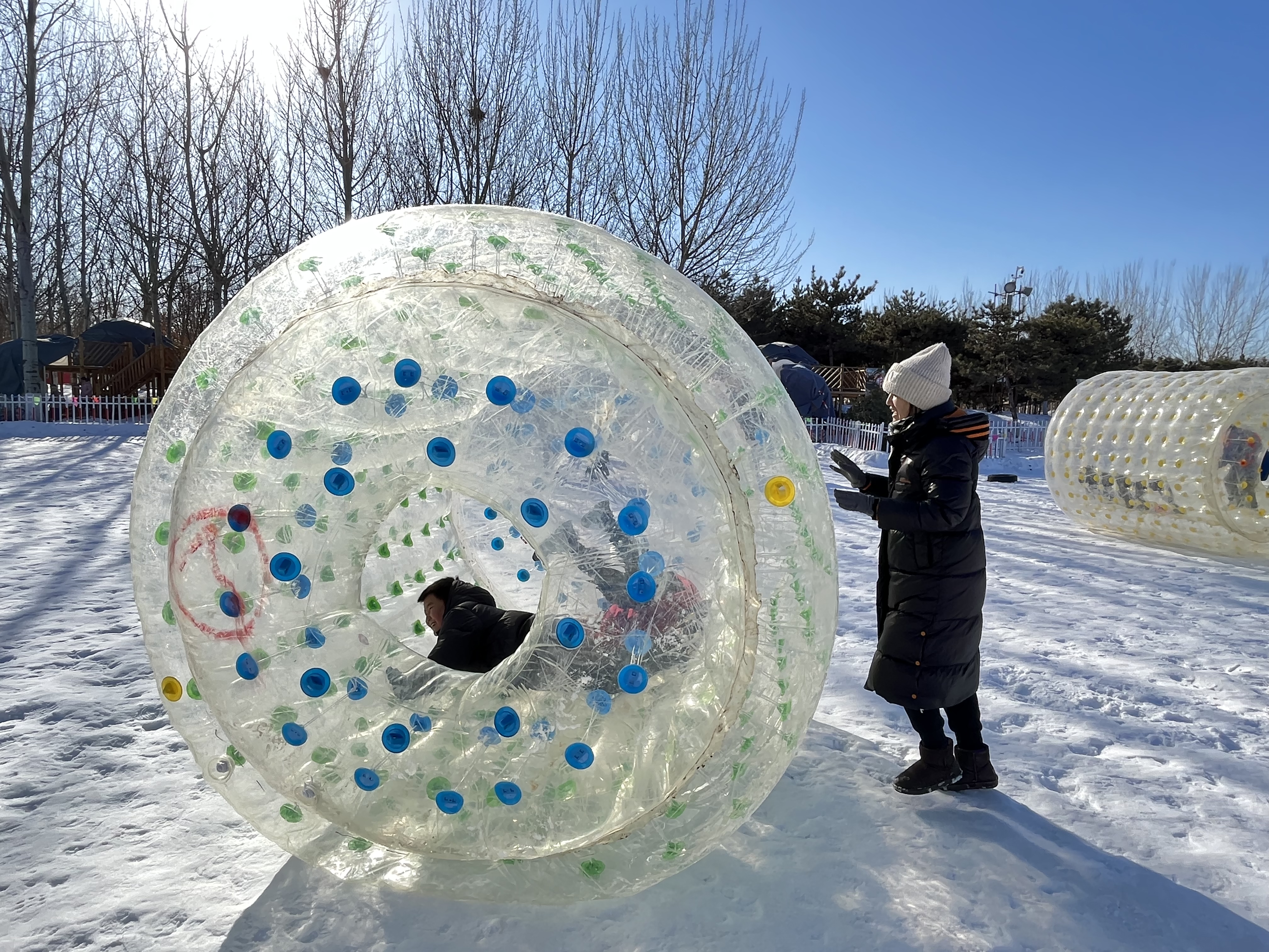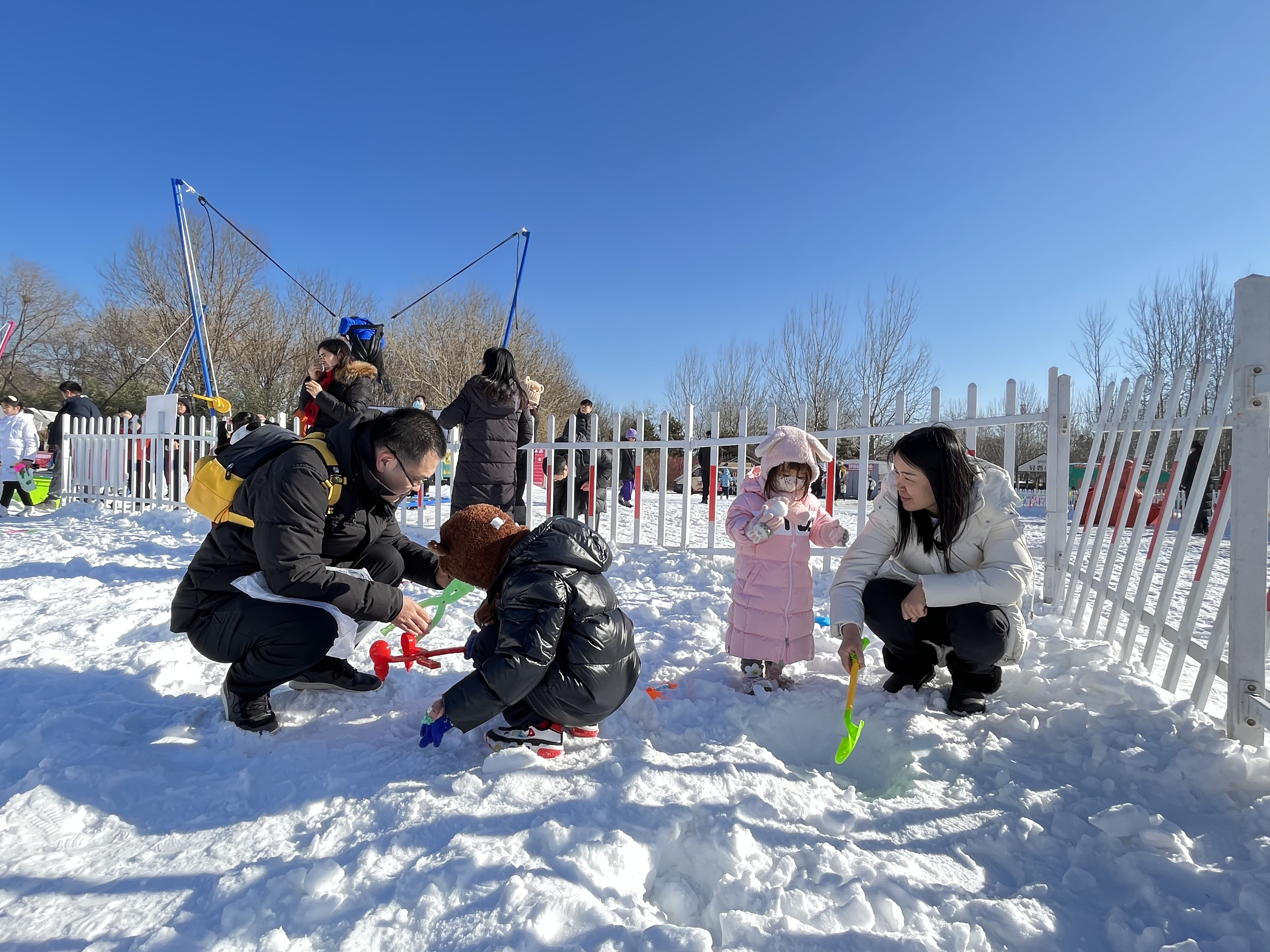 无冰雪,不冬天。南海子公园考拉冰雪大世界为众多亲子家庭打造了一处欢乐打卡地。卡丁车、雪地转转、雪地挖掘机、雪地摩托等15个冰雪项目唤醒童年时光,吸引孩子和父母们排队打卡,更有兔子萌宠和萌娃们雪地嬉戏,欢声笑语充满每个角落。南海子公园相关负责人介绍:“今年的冰雪大世界我们增派了50名志愿者和20名保安,参与安全疏导和服务工作,进一步升级现场保障,为游客提供更贴心的服务。”