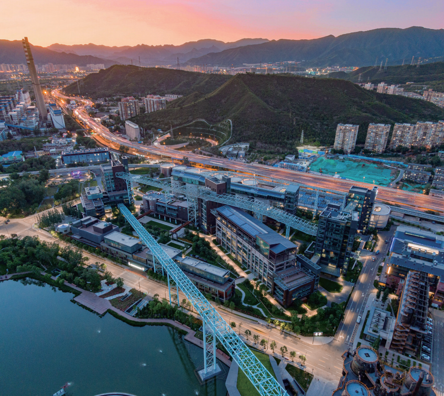 首钢冬奥广场项目位于新首钢高端产业综合服务区工业主题园区的西北部,总建筑面积8.8万平方米,曾作为北京冬奥组委的办公场地。整体园区共有单体建筑11栋,从2600平方米到22000平方米不等,承载业态包括企业独栋、会议楼、展示中心、员工餐厅、商业街区等,另配有专用停车楼,是打造“北京国际科技创新中心的首钢高地、北京国际消费中心城市的首钢支点”的重要产业载体。