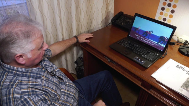 (▲弗拉基米尔·沃罗比约夫观看由他创作的以北京冬奥会为主题的俄语歌曲《北京》)