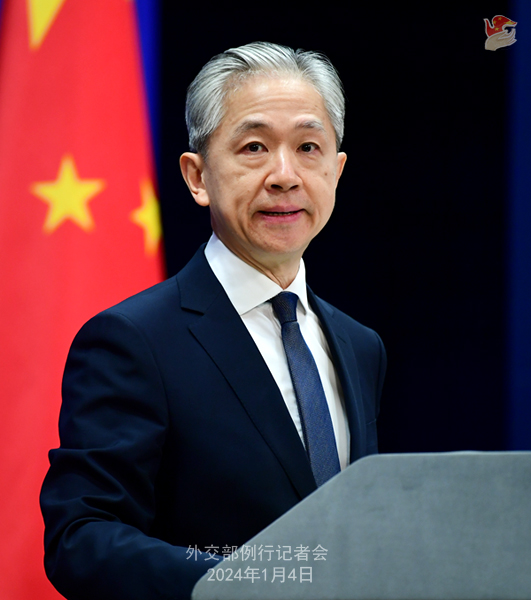 1月4日,外交部发言人汪文斌主持例行记者会。
