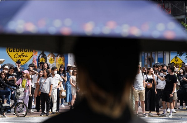 2023年6月29日,行人在日本东京涩谷街头等待过马路。图源:新华社