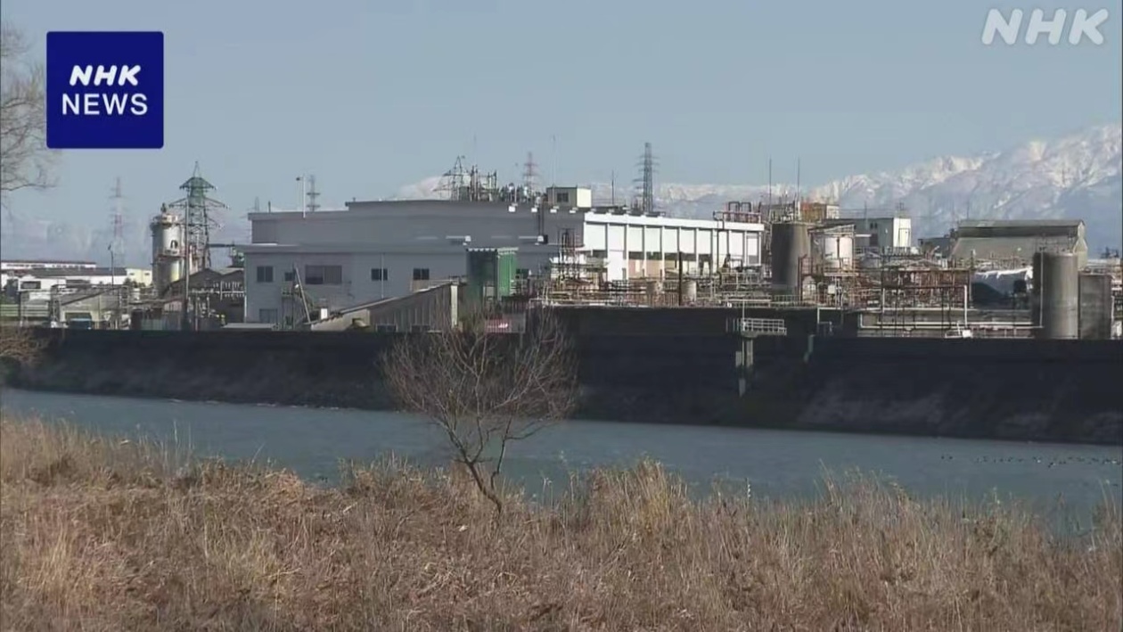 日本广播协会1月5日报道,日本富山县一化工厂发生泄漏事件。日本广播协会报道配图
