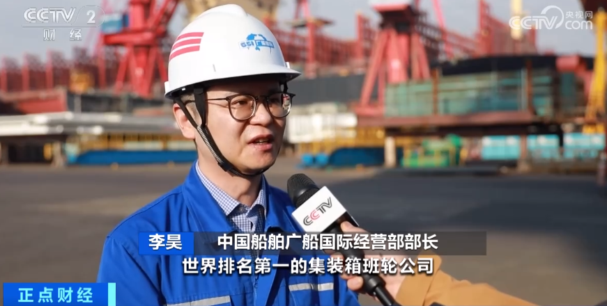中国船舶广船国际经营部部长李昊:通过在绿色环保方面的优势,吸引全球各地的船东来我们这里下订单,交付时间已经排到2027年甚至2028年。