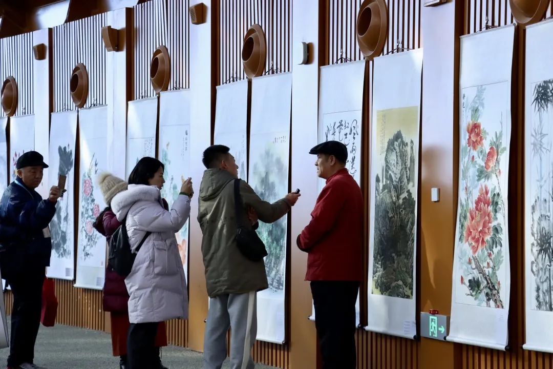 书画展上,人头攒动,气氛喜庆和谐。广大市民对书画艺术展表现出了极大兴趣,参观展览的人络绎不绝。时而细细品味、交流心得,时而拍下自己喜欢的作品。另一边百余位书画家在现场挥毫泼墨、写福迎新。一幅幅书画作品贴近时代、寄托美好、催人奋进,一张张书法作品和“福”字笔力雄健,气韵生动,书写出新年的新气象、新风貌。