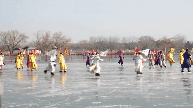 作为清代帝王最喜爱的冬季活动,此次圆明园冰嬉表演当然不可或缺。乾隆皇帝曾专门写下1300余字的《冰嬉赋》,并将其定为大清国俗。圆明园是历经清朝五代皇帝的皇家宫苑,自然也承载了许多帝王的故事。圆明园管理处副主任李向阳向记者介绍说:“今年冰嬉表演特以“康乾盛世牡丹情”为主题,为大家重现“三朝天子共赏牡丹”的历史典故。此次表演位于福海冰场,1月的每个周末,一天3场轮番上演,传承经典、共迎新春。大家可以通过冰上的表演,了解历史上的这一段历史。”