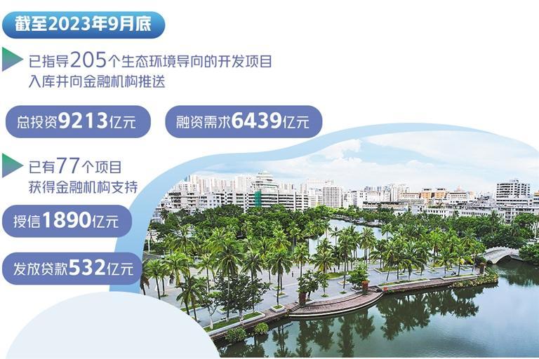 根据生态环境部披露的数据,截至2023年9月底,已指导205个EOD项目入库并向金融机构推送,总投资9213亿元,融资需求6439亿元。目前已有77个项目获得金融机构支持,授信1890亿元,发放贷款532亿元。