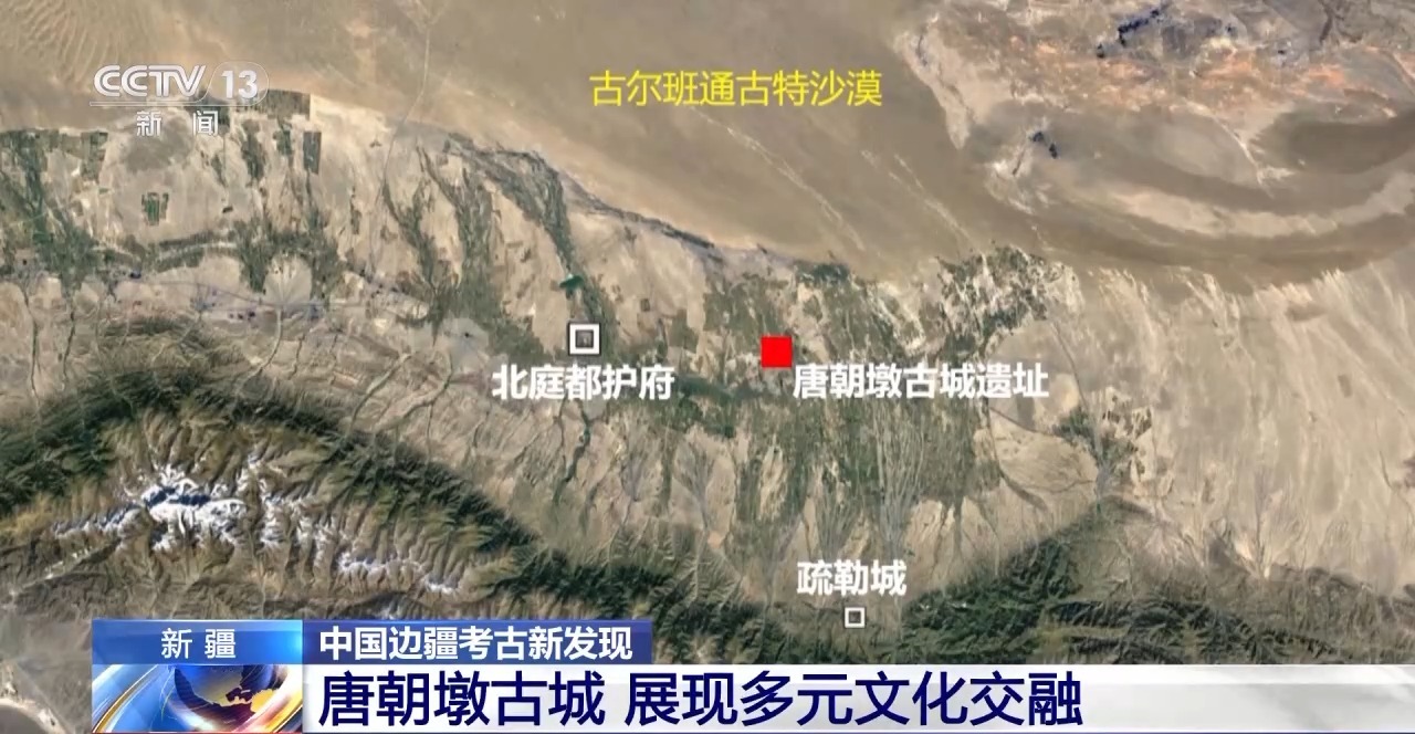 唐朝墩古城,位于天山北麓丝绸之路的新北道东端,始建于唐贞观十四年(公元640年)前后,曾是一处重要的军政建制和交通枢纽。考古发现不同外来宗教遗迹,建筑采用莲花纹方砖等典型唐代风格,2023年发现的外来宗教壁画,也有明显唐代特点。