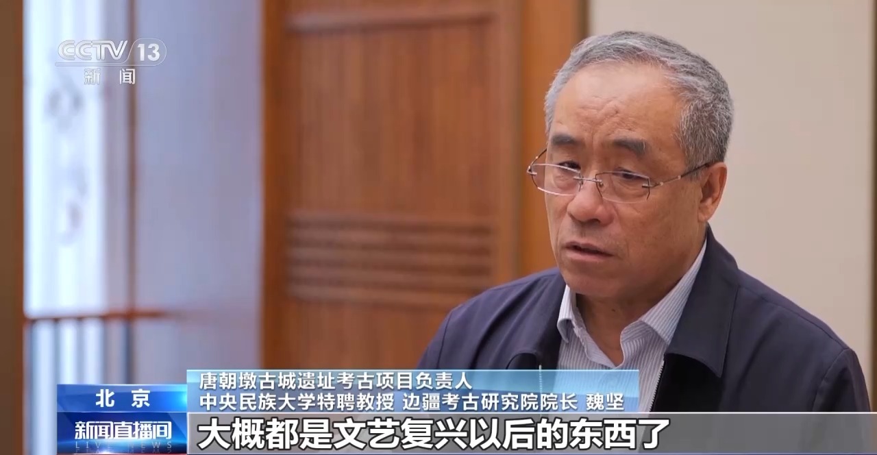 唐朝墩古城遗址考古项目负责人、中央民族大学特聘教授边疆考古研究院院长魏坚:壁画是八九世纪这个样子,西方现在那些画作大概都是文艺复兴以后的东西了,所以这个太重要了。