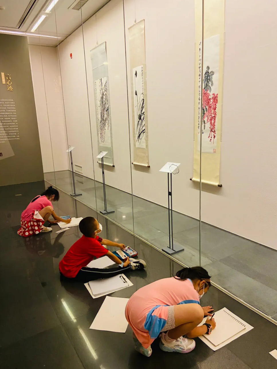 对于孩子感兴趣的作品,可以鼓励孩子拿起纸笔进行模仿或针对细节进行发散思维的添画、改编等创作。家长也可以即时拍下孩子的活动照片、视频,记录成长,随时回忆,强化艺术熏陶。此外,把控好时长,根据孩子的体力和有效注意力集中的时间来控制看展时长,可以休息补充体力,少时多次观看。
