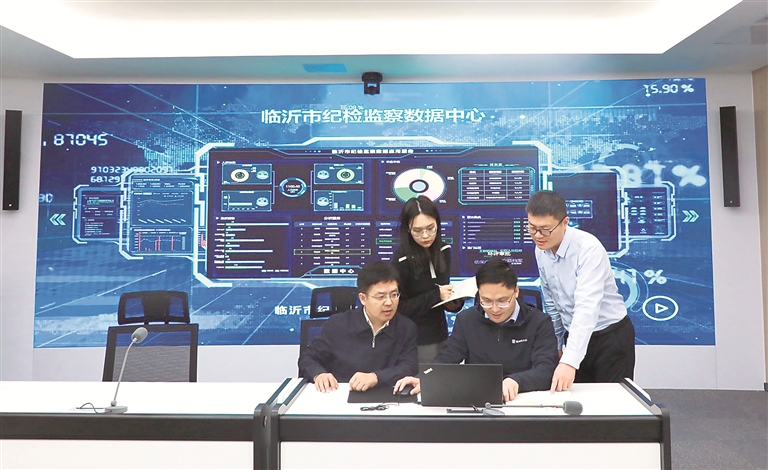 山东省临沂市纪委监委以大数据赋能政治监督,通过建立数据监督模型,细化监督内容,拓宽监督渠道,增强精准发现问题能力。图为该市纪检监察干部通过数据比对,筛查惠民惠农领域问题线索。宋英启 摄