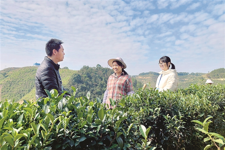 广西壮族自治区梧州市纪委监委把开展六堡茶产业“一片叶子”专项监督作为政治监督的重点,紧盯茶产业政策资金落实、茶农茶企急难愁盼问题,加强监督检查。图为近日,该市长洲区纪检监察干部深入茶园向群众了解政策措施落实情况。吕晓艺 摄