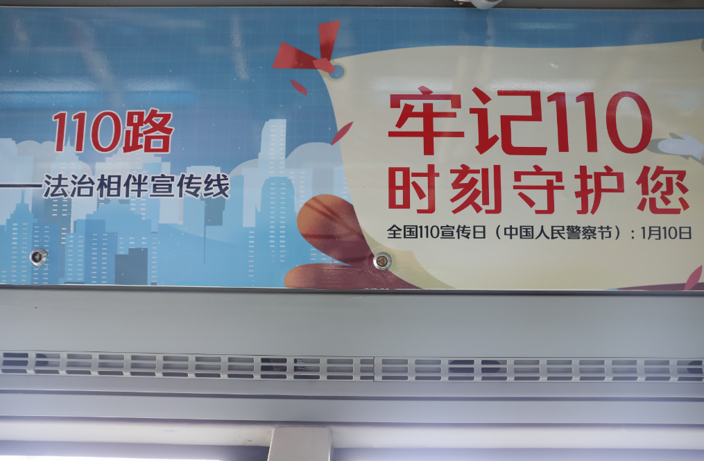 据了解,110路,对应报警电话110,车厢文化主题以乘坐公共交通工具时防扒窃提示、寻求110救助的正确方式、防范诈骗等为主要内容。北京公交集团电车分公司利用110路与公安报警服务电话“110”相契合,打造公交法治相伴宣传线,提高法治宣传实效性,做好“路上普法”,推进“流动普法”,拓展“普法阵地”。同时,利用车厢文化宣传法治常识,进一步提高广大市民乘客的守法意识、防诈骗意识和自我保护意识,营造全民学法、知法、守法的浓厚氛围。