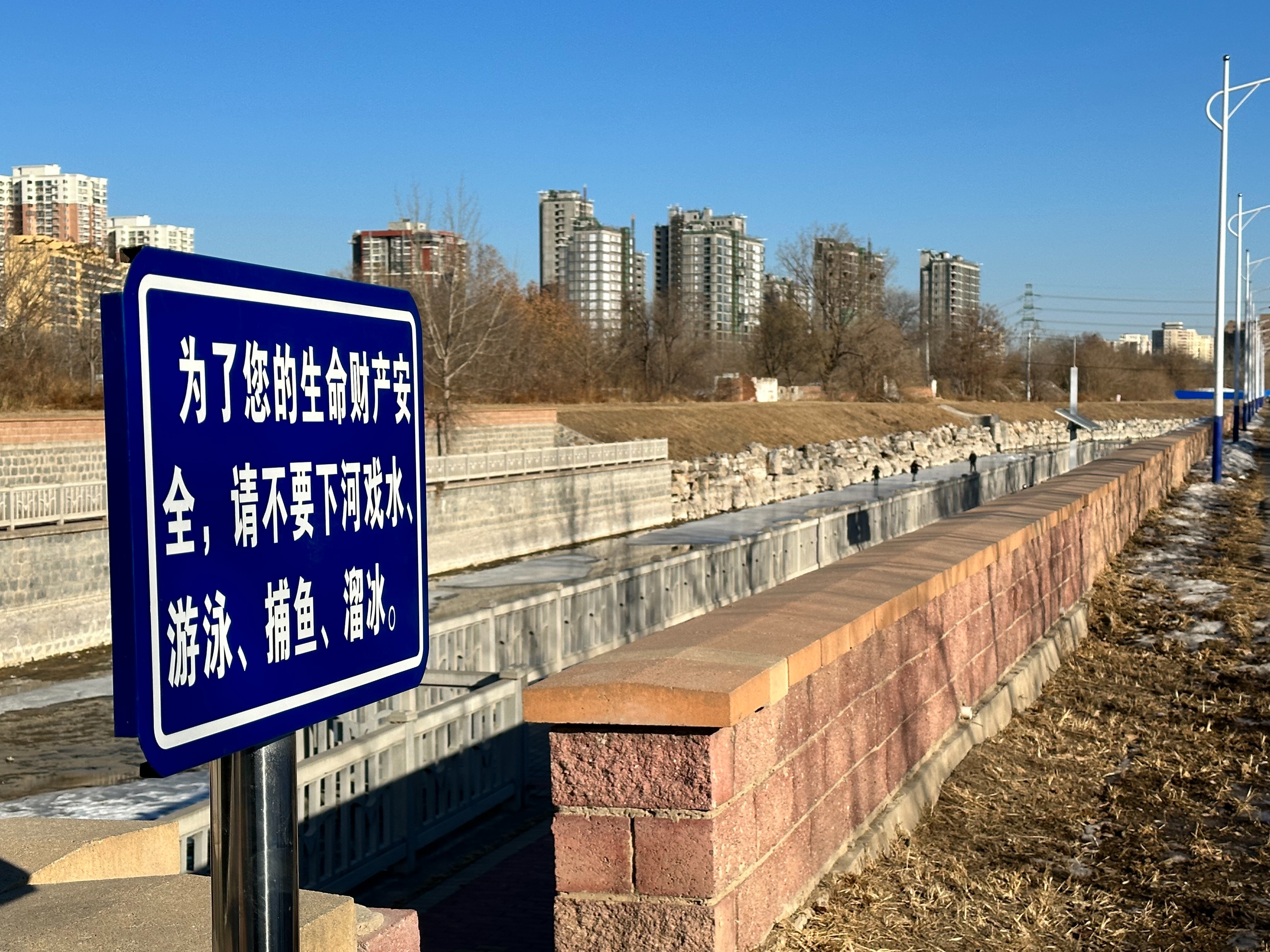 记者注意到,河道沿岸就设有“为了您的生命财产安全,请不要下河戏水、游泳、捕鱼、溜冰”的警示牌,而这些冒险上冰玩耍的人完全忽略了这些生命安全的警告。