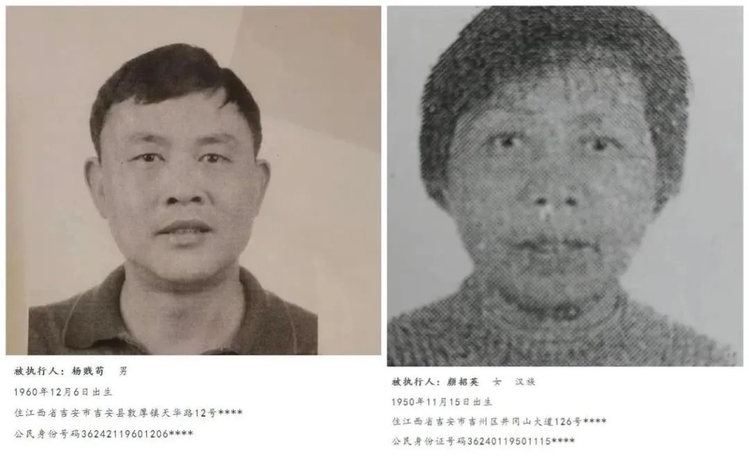 该份公告同时公布了两名被执行人杨贱苟、颜招英的个人相关信息及照片,中国执行信息公开网显示,目前两人均已被限制高消费。