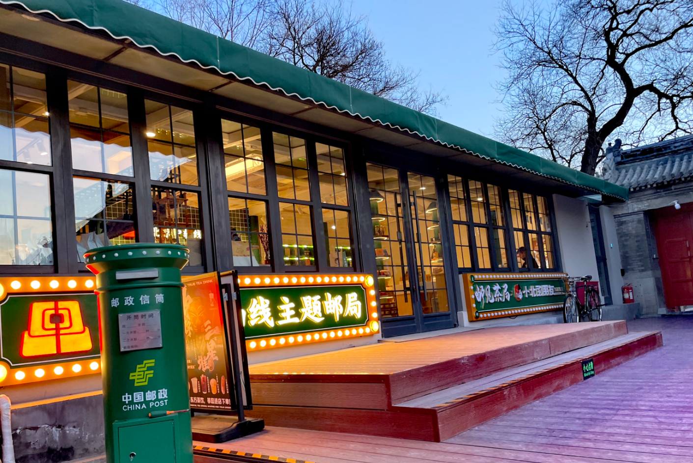 即将开放的中轴线邮局,是首家以中轴线为主题的邮政文创综合服务体。它集综合邮政服务、文创消费、文化交流、展览展示体验于一体。门口,绿色邮筒、投递员使用的传统绿色二八自行车带来浓郁的邮政风。店内,多种多样的邮品和文创品已经上架。《壮美中轴》光栅明信片、北京城楼记忆明信片、邮筒形状的钥匙链、“时光机”北京老公交车冰箱贴、老车站站牌图案茶缸等,琳琅满目。甚至,店内水吧售卖的饮品也是独一份的邮局限定款:“绿邮邮”以牛油果、奇异果、酸奶、牛奶为主要原料,“我寄人间”以樱桃乌龙茶、葡萄、奶油等为主要原料,香气蔓延在整个空间中。