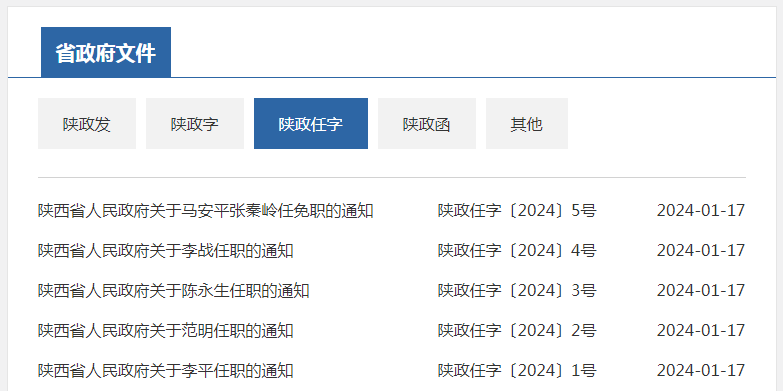 1月17日,陕西省人民政府网站发布一批人事任免通知。