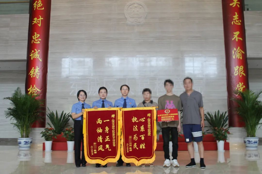 图为东城区检察院检察官为未成年被害人发放司法救助金