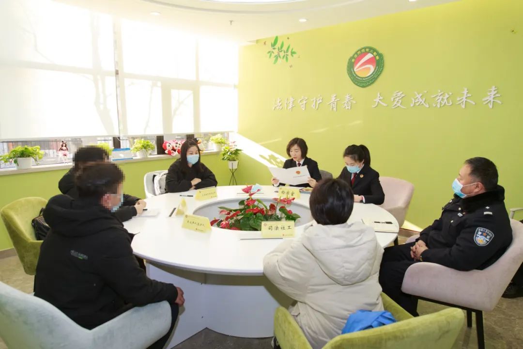 图为海淀区检察院检察官向涉案未成年人的监护人制发“督促接受家庭教育指导令”