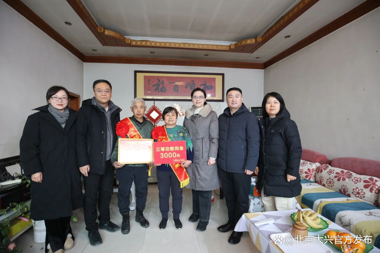 为进一步弘扬新时代拥军优属光荣传统,增强军人荣誉感和军属自豪感,1月18日,大兴区退役军人事务局、礼贤镇相关负责人组成慰问组,共同为张波涛家庭送上立功受奖喜报和奖励金,向立功受奖军人家属表示祝贺。
