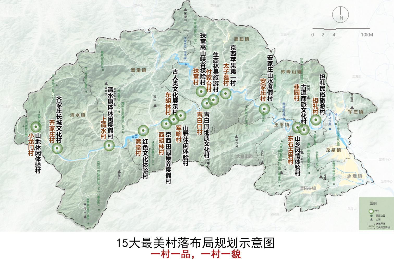 同时,依托农林特色资源,打造山区生态沟域样板,推进妙峰山镇苇甸沟、妙峰山沟(樱桃沟),斋堂镇爨柏沟、沿河城沟,王平镇韭园沟、王平沟,雁翅镇田庄沟,清水镇灵山沟、百花山沟、龙门涧沟等10条沟域旅游设施建设,打造10大主题沟域。