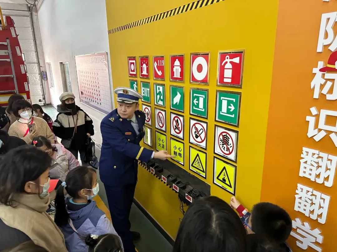 授课结束后,家长和学生们在“烟热逃生屋”,模拟火灾发生时的真实场景,由家长带领学生现场体验了室外疏散逃生,对消防标识和消防服装进行了进行了学习和了解。