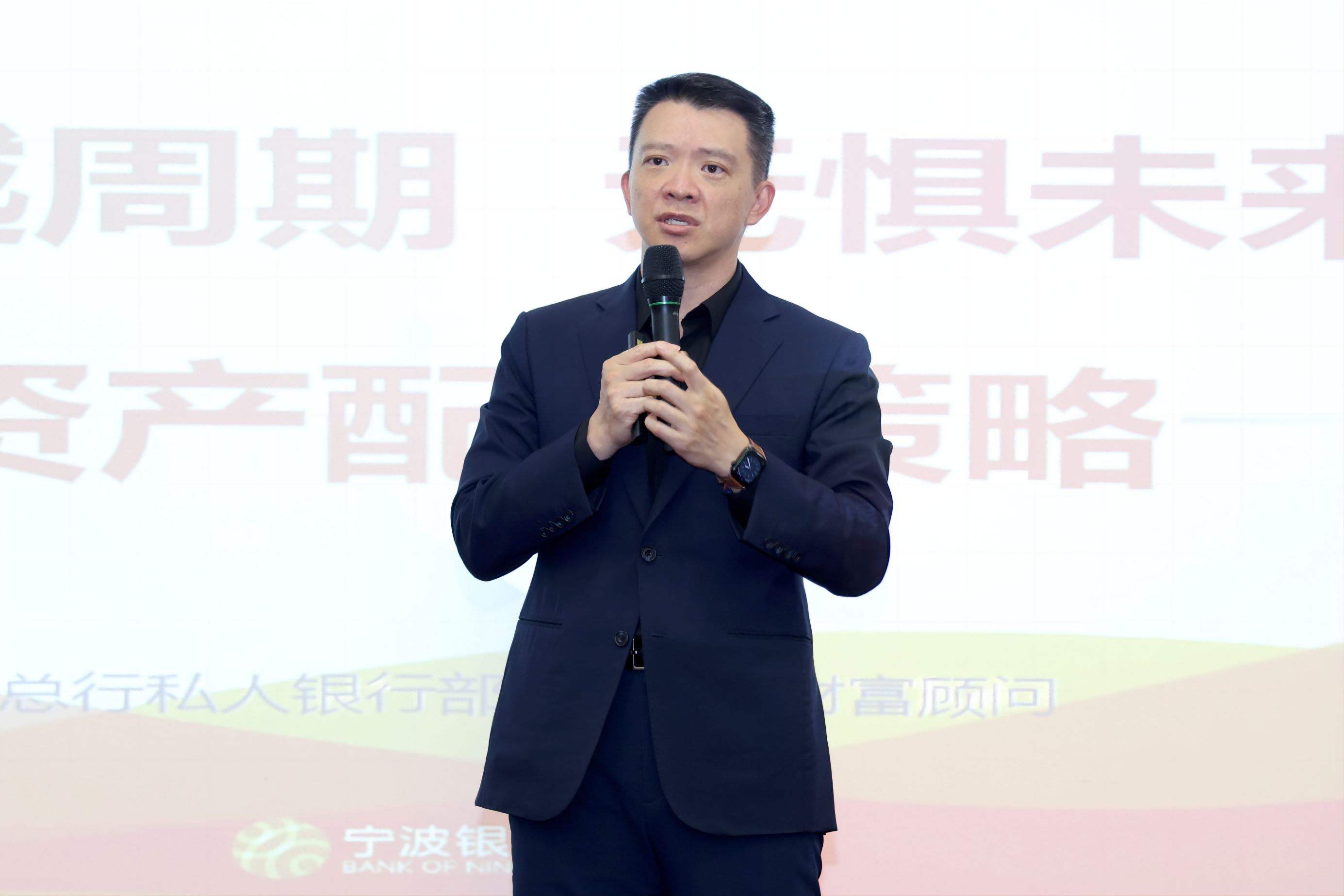 本次活动邀请到宁波银行总行私人银行部首席财富顾问、副总经理陈伯宪就《穿越周期,无惧未来-资产配置策略》进行专题分享。陈首席由宏观形势切入,在未来越来越多变局的情势下,如何看待投资、把握现金流以及进行资产配置,并借助配置工具提供解决方案。