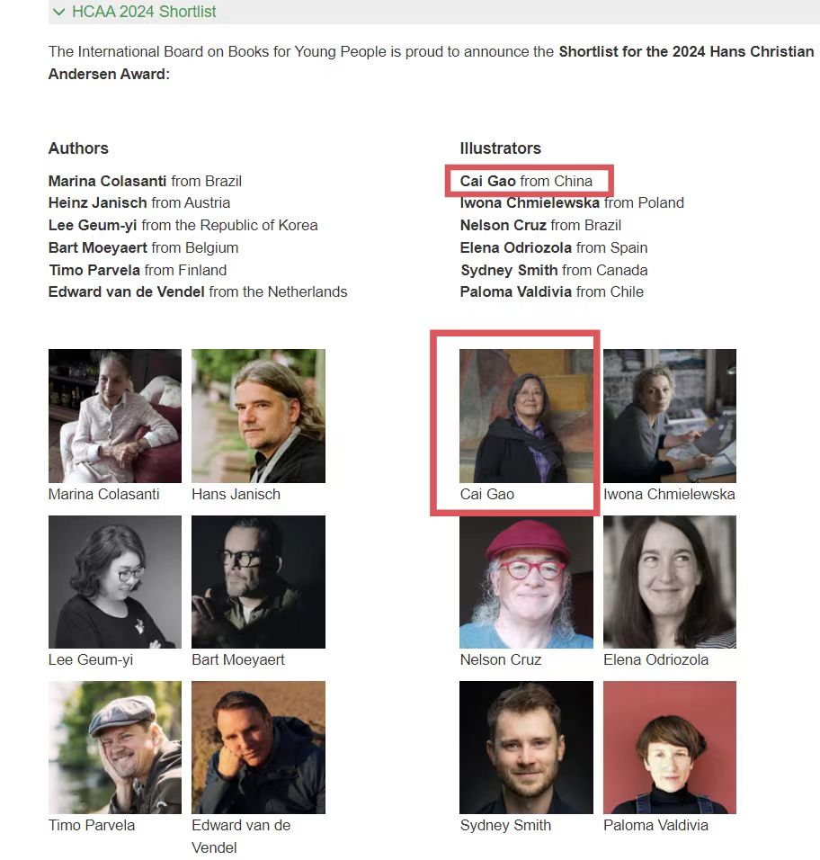 北京时间2024年1月18日,国际儿童读物联盟(IBBY)官网公布了2024年“国际安徒生奖”短名单,中国绘本画家蔡皋入选2024年国际安徒生奖(插画家)短名单,也是此次入围者中唯一一位中国插画家。