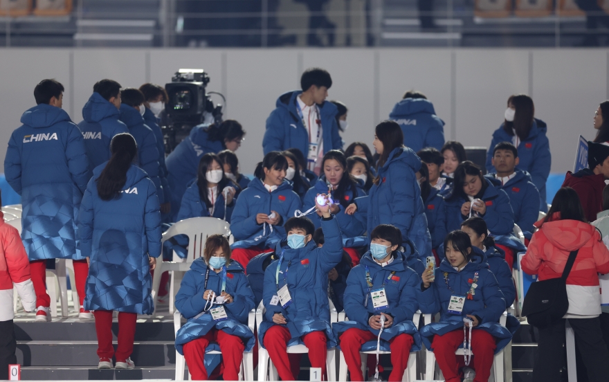开幕式上,中国体育代表团身穿以“官哥汝钧定”宋代五大名窑为设计理念的“冰裂纹”羽绒服和领奖服在观众席观看现场开幕式。这套融入传统文化与国韵重器的服装在社交媒体上被不少网民点赞。