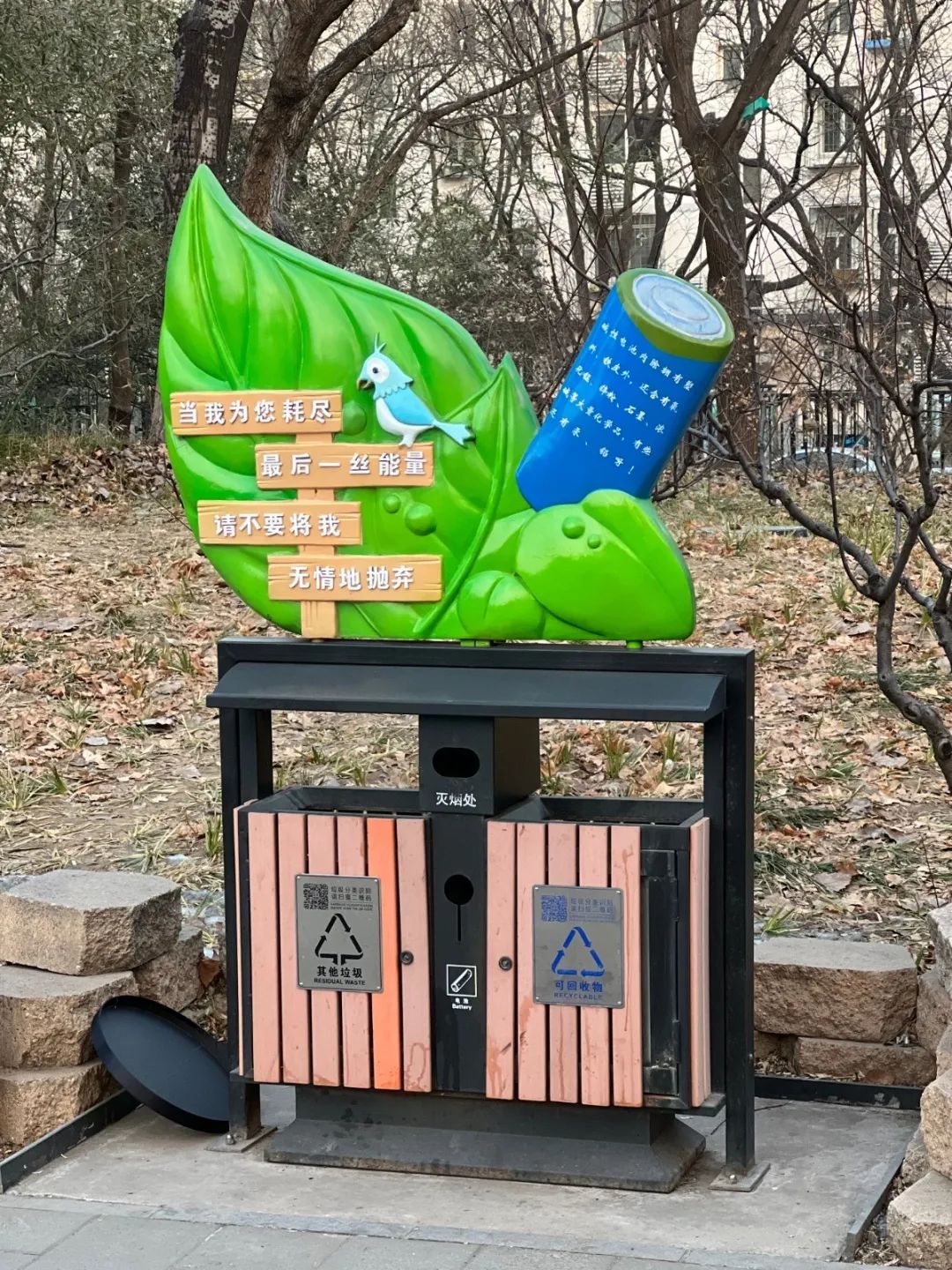 记者看到,天气环境实时播报大屏幕立在门内路侧,公园的路面上、墙体上印有各种和环保有关的知识介绍文字,就连种植的植物都是节水型的吸碳耐旱植物,垃圾桶上也设置了卡通雕塑和环保文字介绍。据公园负责人介绍,园内的路灯是自主发电式太阳能灯。