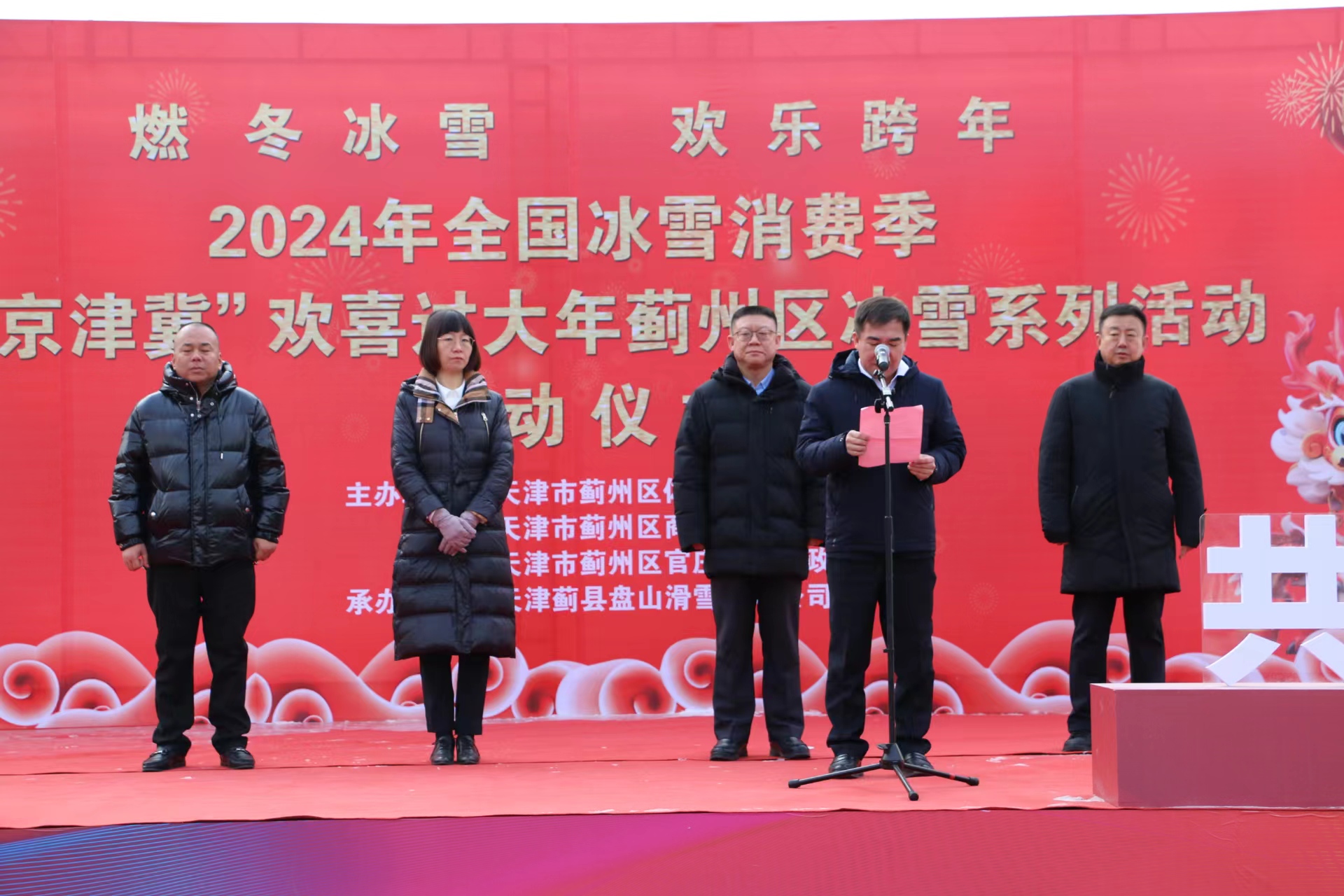 此次活动以“燃冬冰雪 欢乐跨年”为主题,由天津市蓟州区体育局、天津市蓟州区商务局、天津市蓟州区官庄镇人民政府联合主办,活动现场既有滑雪表演、欢乐人偶、龙腾虎跃拜大年等文艺演出,还有现场制作的蓟州传统年味美食,让众多冰雪旅游爱好者大饱眼福和口福,尽情感受冬日的欢乐。