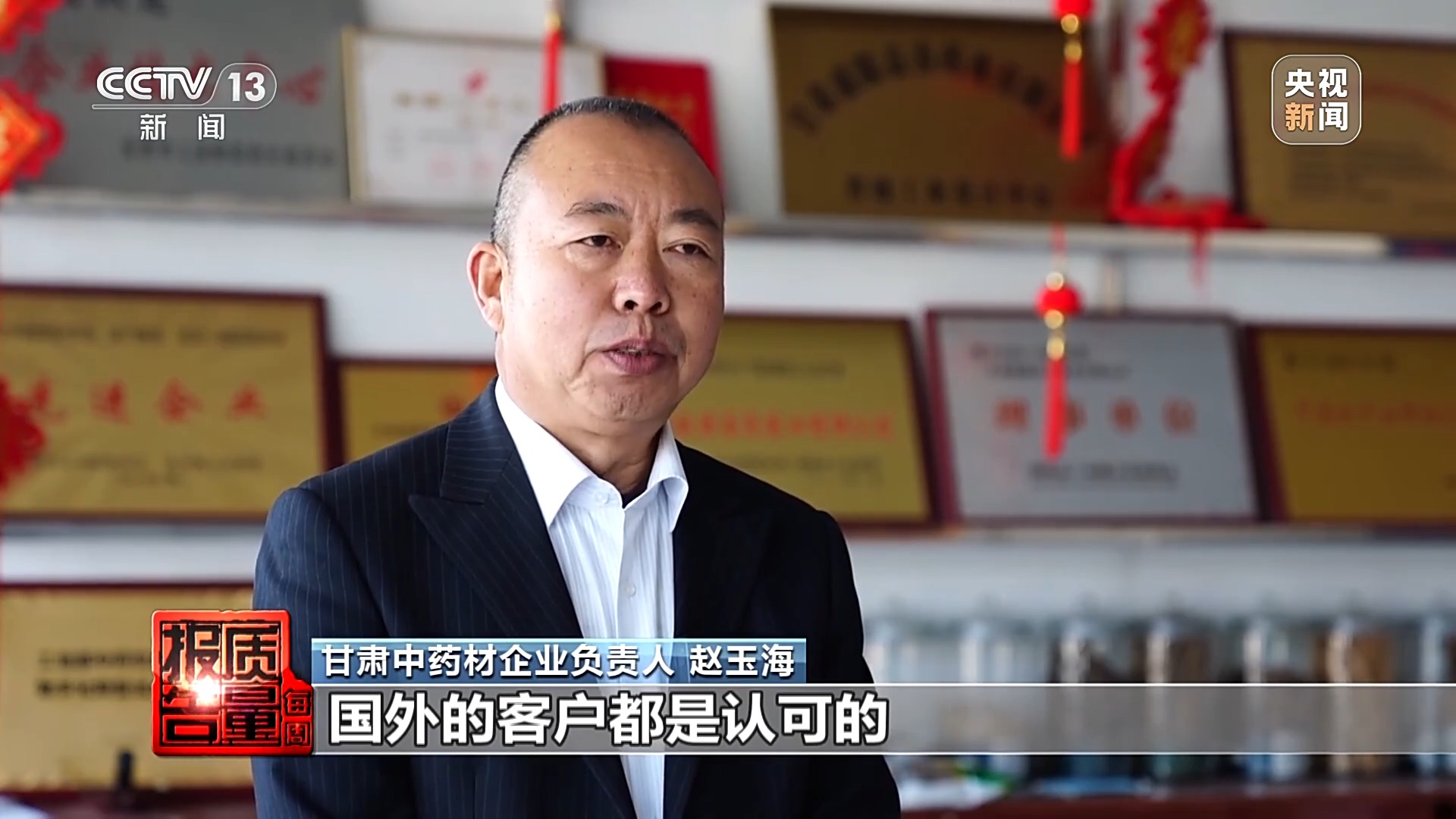 甘肃中药材企业负责人赵玉海:现在出口的这些订单,只要是符合药典标准的,国外的外客户都是认可的。订货的外国客户越来越多。