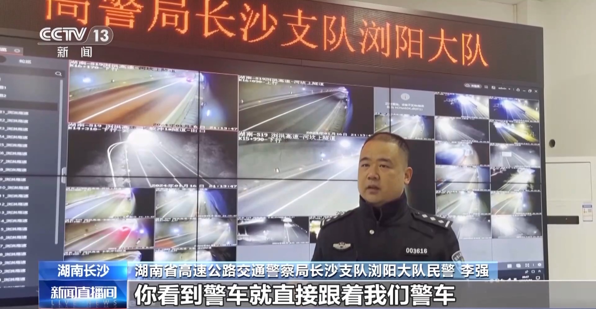 湖南省高速公路交通警察局长沙支队浏阳大队民警 李强:我第一句话说你在什么位置?他说还过500米就到官渡收费站,我说那好,我在前面等你。你看到警车,就直接跟着我们警车,我们警车往哪个方向,你就到哪个方向。你紧紧跟着我们警车,杭长高速,我们往那里走,车速差不多140公里/小时,小车还比较多,货车也很多。过了大概6分钟,到了互通,车速一般是40~60公里/小时才拐弯,如果还没采取措施的话,这个车子有可能直接飞出去了。快出隧道的时候,我就把速度稍微降了一下,让他成功地撞到我这个警车。我的车子其实还在开的,往前面走一段,又撞一下。后面,我们两台车都停下来了。这个结果我觉得处置得非常成功。