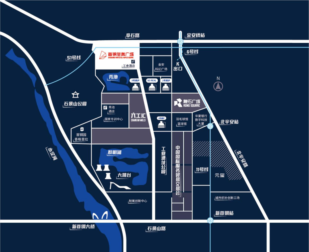 首钢冬奥广场位于新首钢高端产业综合服务区工业主题园区的最北部,曾是北京冬奥组委办公场地,这里既是首钢在一个世纪前的建设起点,也是首钢在一个世纪后的新发展起点。