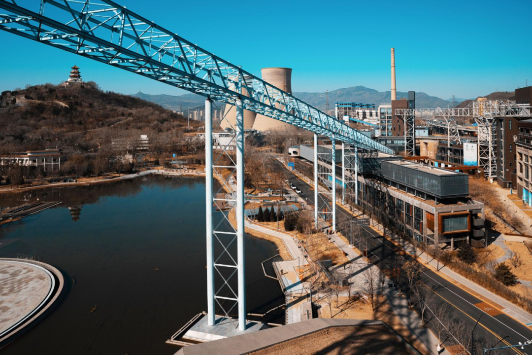 西侧石景山和南侧秀池在留住区域特有的地域环境、文化特色和建筑风格的同时,增加开放式景观廊道、主入口通廊和公共空间,让园区内外景观能积极对话,呈现出“山、水、冬奥、工业遗存”融合的特色景观。