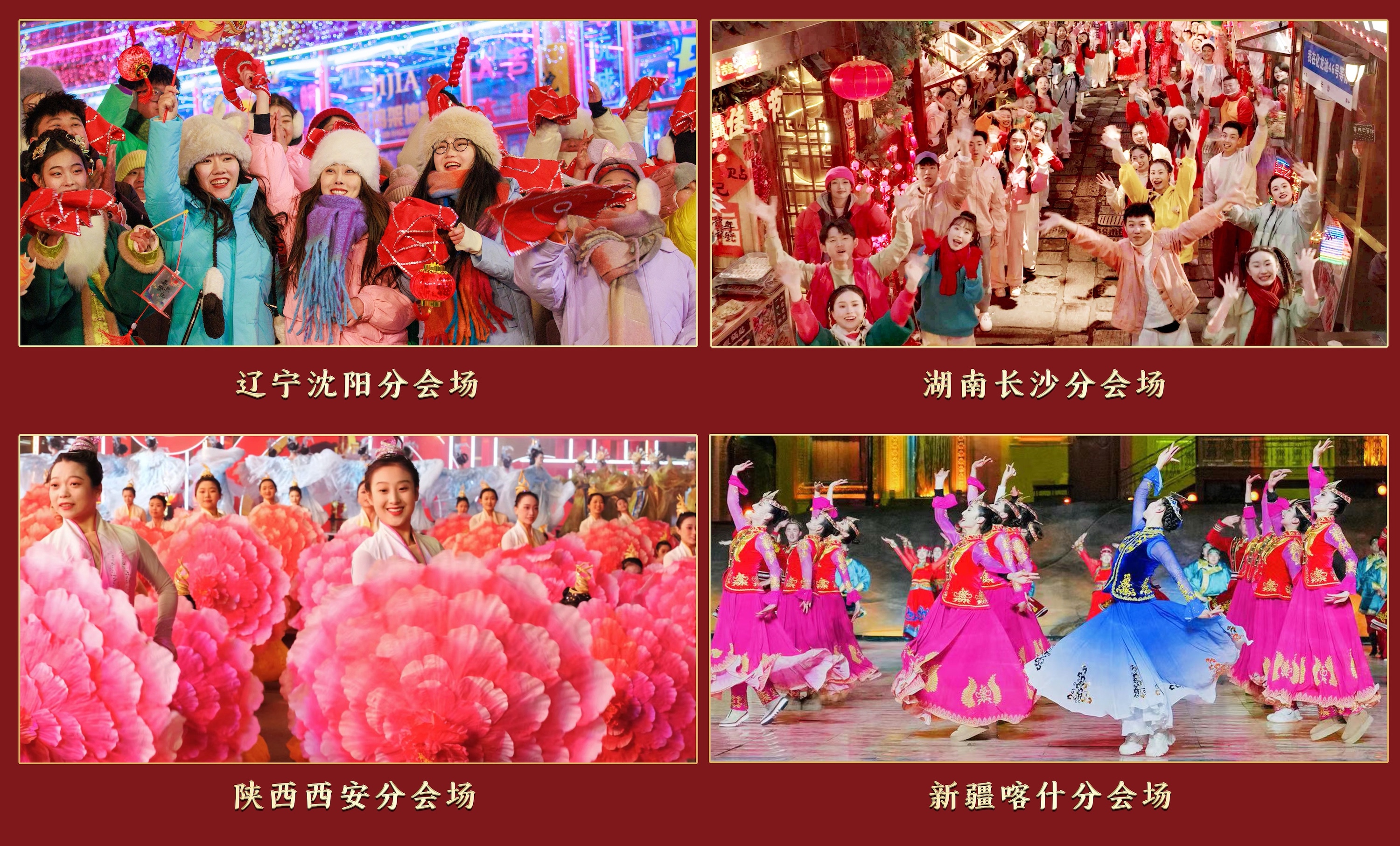 在中国工业博物馆的沈阳分会场,东北曲艺与当代风尚的创意碰撞,让受众在冰天雪地感受火一般的热情;长沙分会场选址于湘江与浏阳河交汇处的“三馆一厅”,用青春之歌赞颂“不夜星城”朝气蓬勃、敢为人先的昂扬风貌;西安分会场的国潮表演将陕派说唱、创意水袖、鼓乐交响等多种艺术形式相融合,大唐不夜城再现诗意满长安的恢弘景象;位于喀什古城内的喀什分会场,各族群众欢歌笑语,带来器乐展示、情景演绎等表演,共同奏响中华民族一家亲的绚丽乐章。第二次彩排中,分会场各具特色的舞台设计和节目创排展现出当地浓郁的风土人情和热烈的新春氛围,让五湖四海的欢乐人群共赴美好之约。
