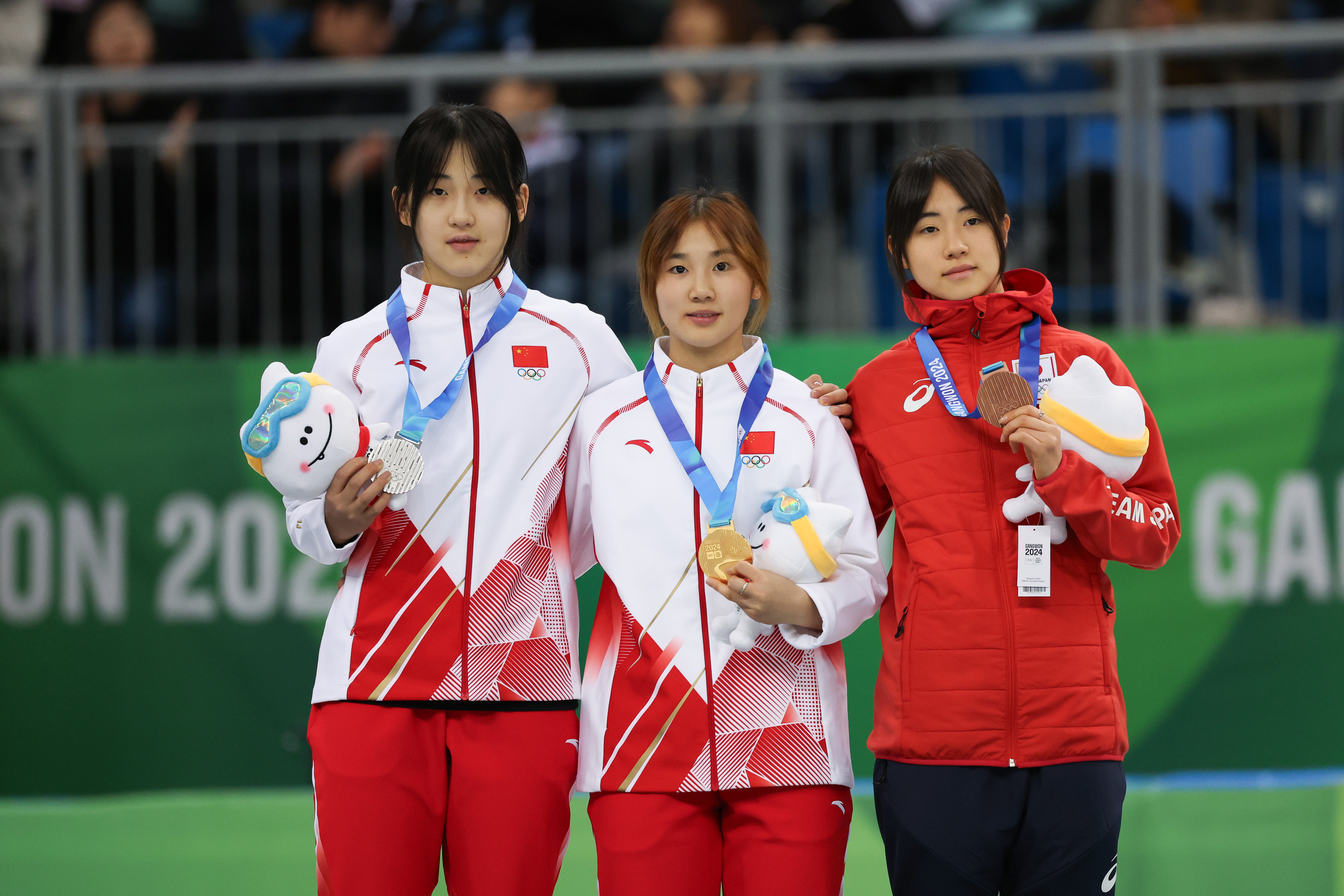 上图是短道速滑女子1500米颁奖仪式,下图左、右分别是短道速滑女子、男子1000米颁奖仪式。