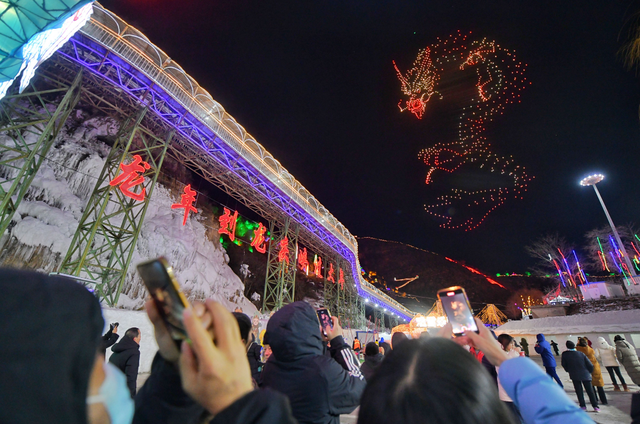 值得一提的是,今年龙庆峡冰灯冰雪嘉年华以“盛世龙腾”为主题的无人机表演,讲述龙庆峡里的“小鲤鱼”泡泡,越过龙门后被冰封在“气泡冰”下,吸纳盛世伟力,腾空而出、化身为龙的故事,带给游客不一样的视觉体验。据了解,春节假日期间,龙庆峡还有非遗演出、嗨动龙庆峡音乐舞蹈等精彩活动,营造喜庆的节庆氛围。