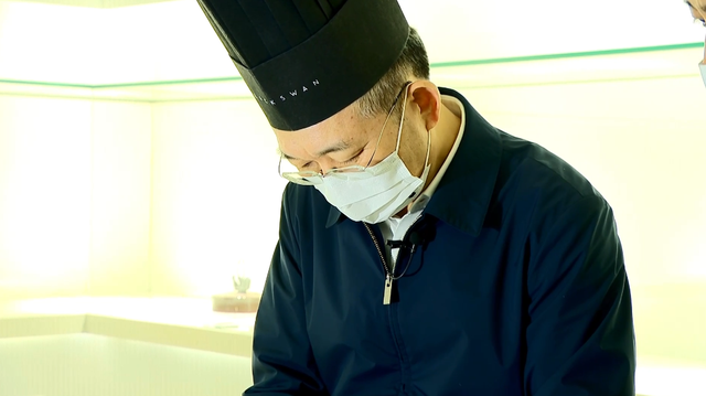 放好精致小巧的黑天鹅装饰后,龚书记完成了亲手diy的黑天鹅蛋糕。那么一个蛋糕大概需要多少道工序?罗红艺术馆五星裱花车间主任甯由东直言:“像这款蛋糕,每一对天鹅上面的羽毛,都是要经过我们纯手工划上万刀,才能展现出这种美感的。”