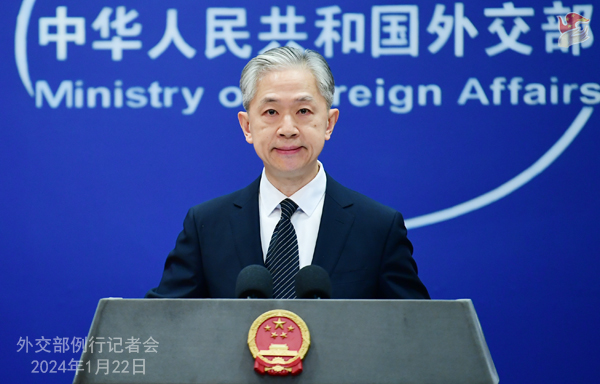 1月22日,外交部发言人汪文斌主持例行记者会。