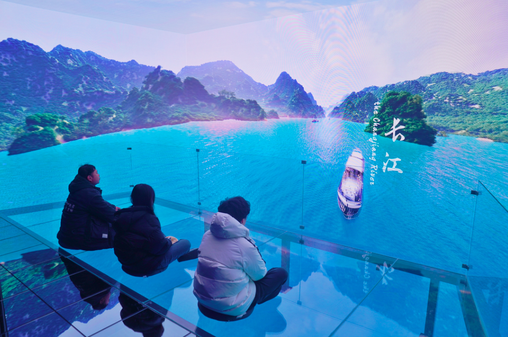 这里有玻璃悬空地板,倒映着宇宙星河,观众坐着不动、不戴任何设备就可以饱览世界景观,遨游外太空,穿越历史,享受全方位感官盛宴。