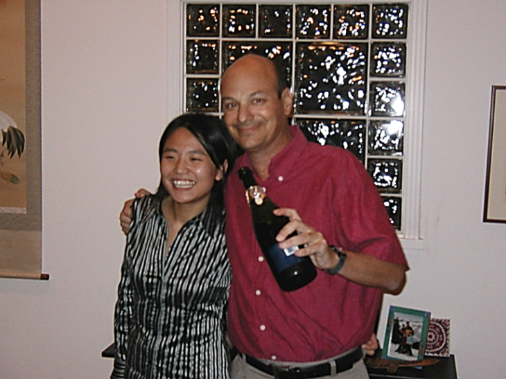 林大宇(左)博士答辩后,Lawrence(右)为她举办了一场庆祝派对,当时他已经病得很重了。