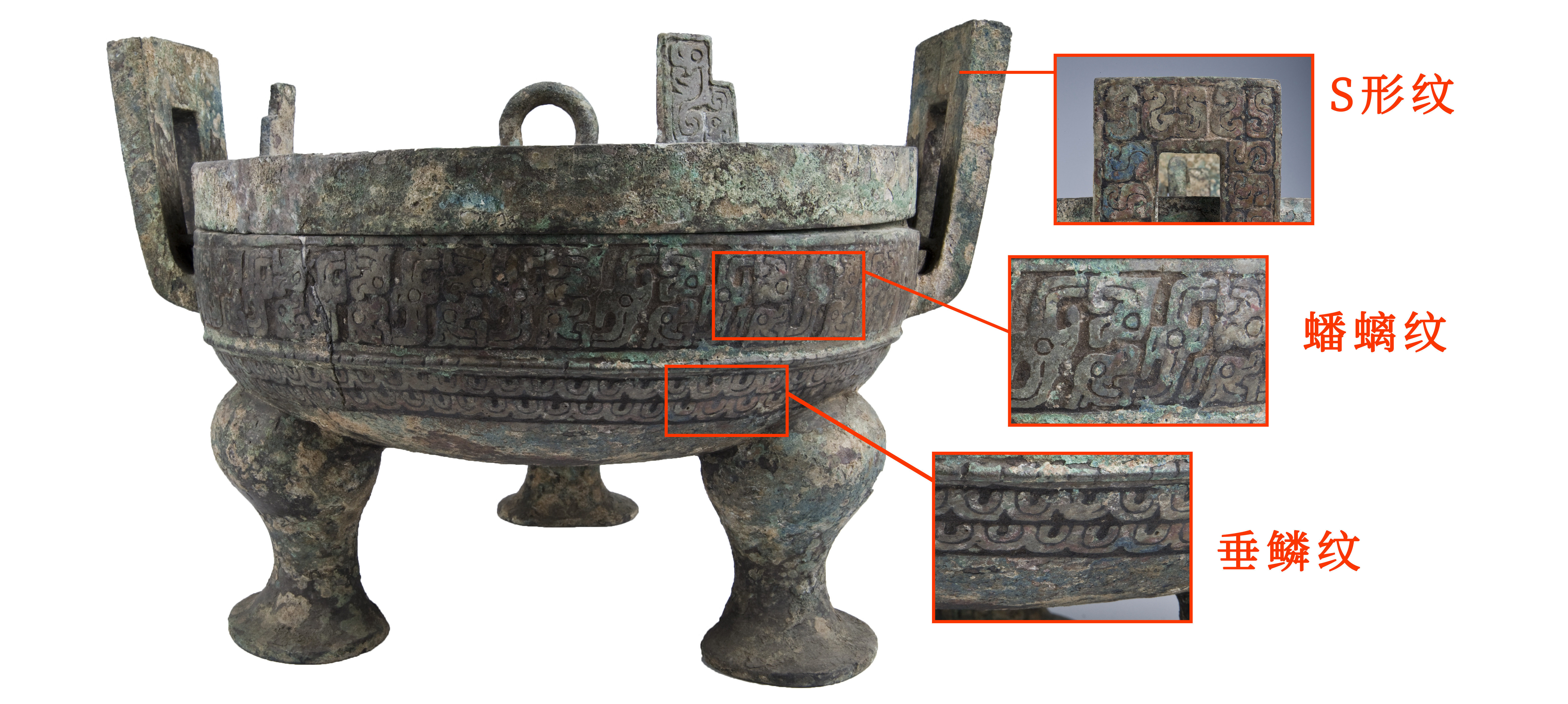 腹下部饰垂鳞纹,耳外饰S形纹