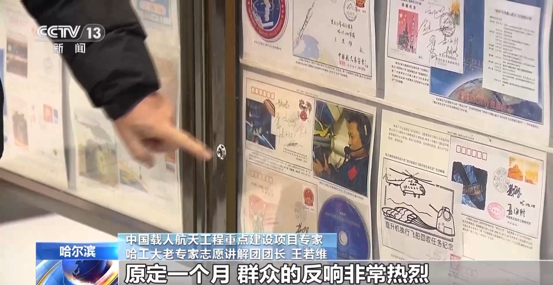 这几天,哈工大航天馆内,航天专题集邮展正在举行,本次集邮展共展出各类邮品15部50框,其中有近百封邮品都曾随神舟飞船进入太空,更让游客惊喜的是,提供免费讲解服务的竟然是中国载人航天工程重点建设项目的专家王若维。