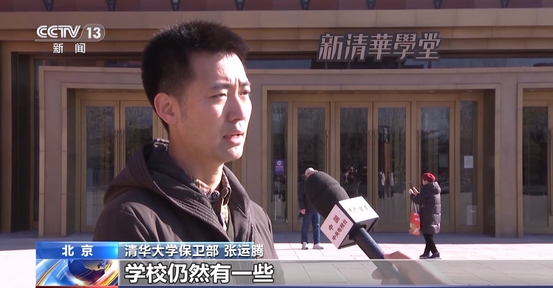 清华大学保卫部 张运腾:因为寒假的时候,学校仍然有教学科研任务在进行,到教室、实验室周边,希望能够轻音轻语,文明参观。倡导大家进入校园以后能够遵守学校的管理规定。