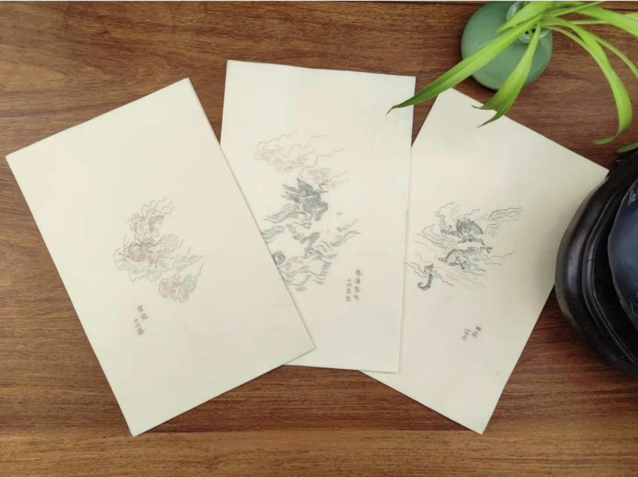 荣宝斋则精选《十竹斋笺谱》中《春涛龙起》《神龙》《云龙》三种龙笺笺样,推出甲辰贺岁限量版纪念笺,限量发行350 套。纪念笺运用国家级非遗项目荣宝斋木版水印技艺印制,集饾版和拱花技艺于一体,精工雅致,独具匠心。这些龙年文房新品也将出现在春节期间的厂甸庙会上。
