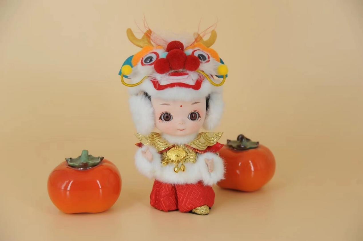 一些创新发展非遗技艺的品牌商家,也纷纷推出新春专属产品。“唐人坊”制作北京绢人龙娃礼盒套装。