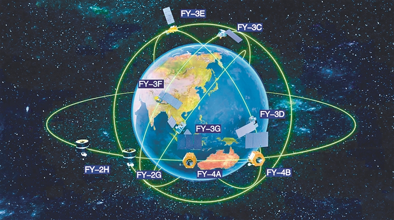 目前9颗在轨运行的风云气象卫星示意图。