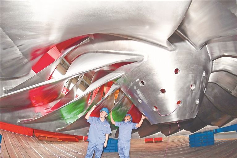 白鹤滩水电站项目中的世界首台长短叶片百万千瓦机组精品转轮。