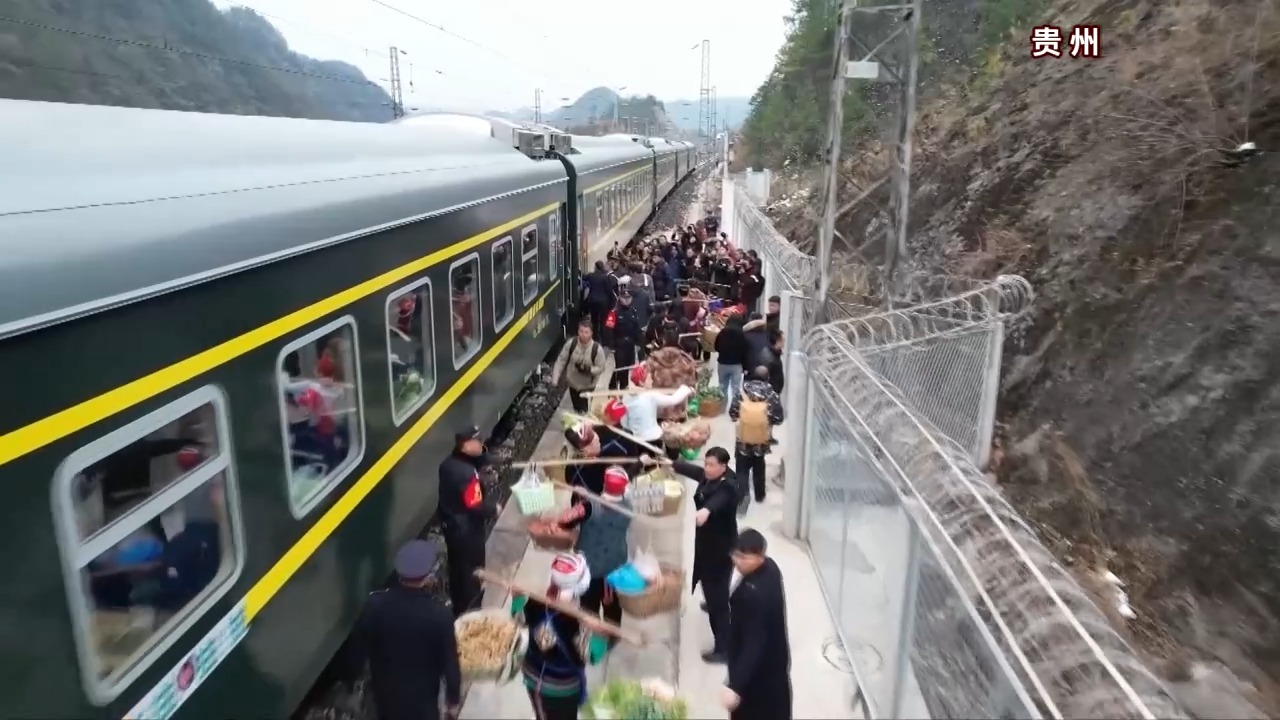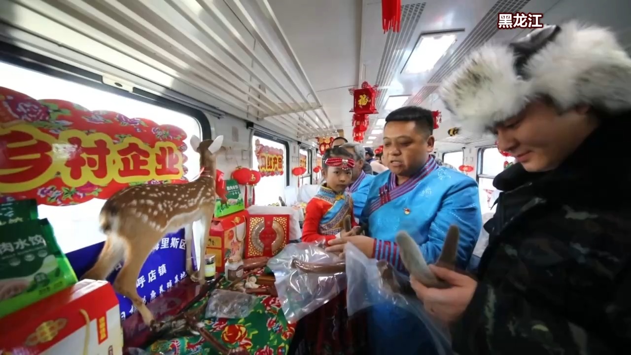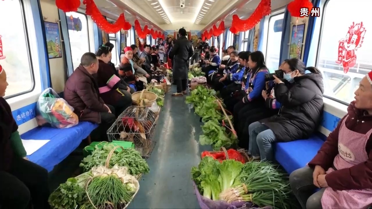 列车上的农特产品车厢变得热闹起来