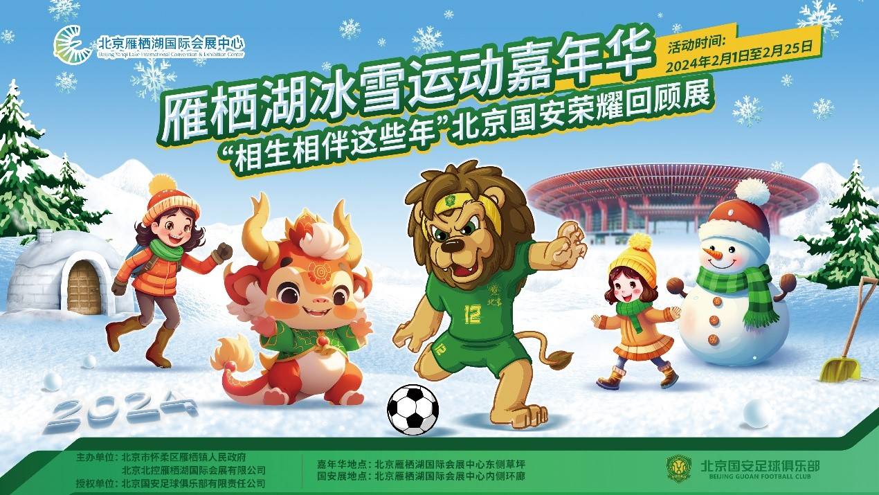 在北京雁栖湖国际会展中心内侧环廊,“相生相伴这些年”北京国安荣耀回顾展将同期举行,其中包括了北京国安建队以来在各项赛事取得的冠军奖杯,各赛季主、客场球衣及其他不同时期的珍贵展品,总数超过600件,如此大规模的展览,在球队历史上尚属首次,广大球迷可以细细回味那些年我们一起追过的北京国安。除了珍贵的展品外,辞旧迎新之际,活动现场还将发售2024年最新款观赛围巾及龙年京狮玩偶,这个抢先换新装的机会,北京国安球迷千万不要错过。